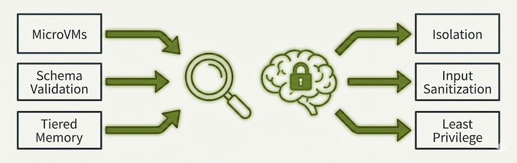 So I mapped my archive to security concepts—NIST, CSA, the frameworks that matter. The overlap is real: Firecracker VMs are isolation. Schema validation is input sanitization. Tiered memory is least privilege. Human-in-the-loop is approval workflows.